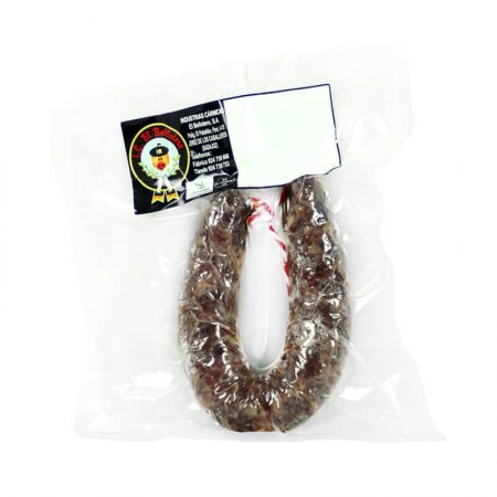 Tradicional chorizo ibérico blanco extremeño de herradura o sarta elaborado sin pimentón.