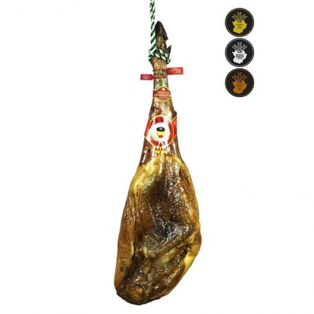 Jamón ibérico procedente de cerdos alimentados en libertad en las Dehesas de Extremadura acogidos a los estrictos controles de la Denominación de Origen Dehesa de Extremadura.