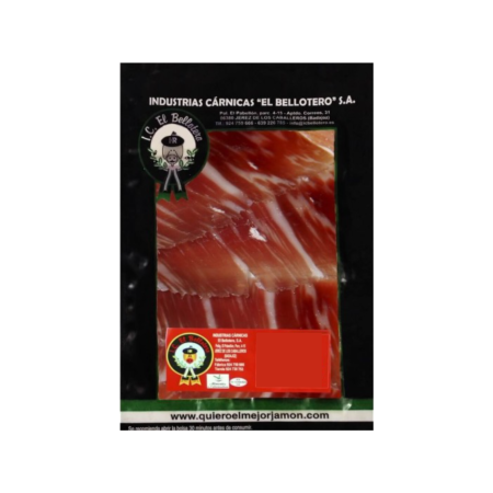 Se presenta en sobres de 80-85 gramos cortados a cuchillo por un maestro cortador y envasados al vacío para una mejor conservación (se recomienda abrir el envase al menos 30 minutos antes de su consumo).