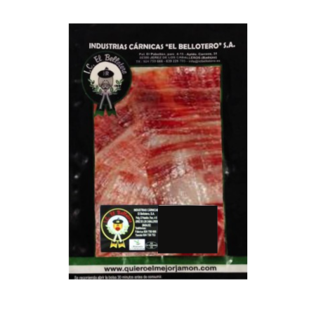 Se presenta en sobres de 80-85 gramos cortados a cuchillo por un maestro cortador y envasados al vacío para una mejor conservación (se recomienda abrir el envase al menos 30 minutos antes de su consumo).
